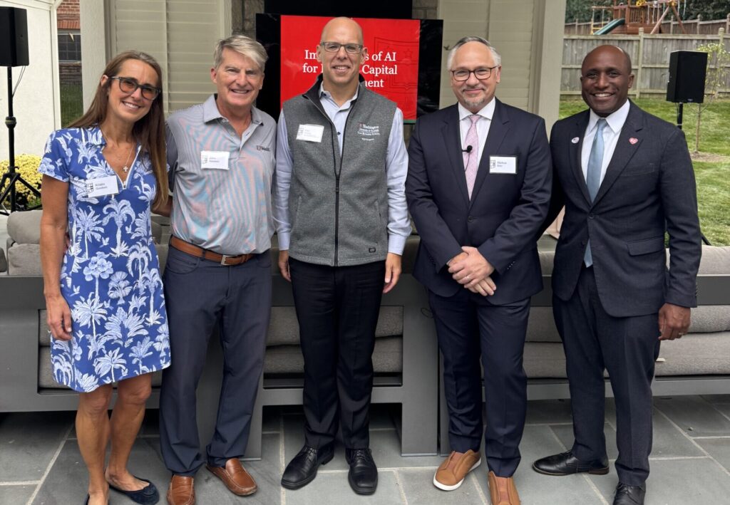 John: In September, we hosted a salon for Olin Business School. About 60 alums and parents joined us for a discussion from Dean Michael Mazzeo regarding the strategic plan, and Professor Markus Baer presented on “The Implications of AI for Human Capital Development.” It was an excellent opportunity to get people together outside of St. Louis who care about WashU, as a way to build community and drive connections. We were very happy to host. There are so many opportunities to benefit the school and this one happened to be in our hometown.